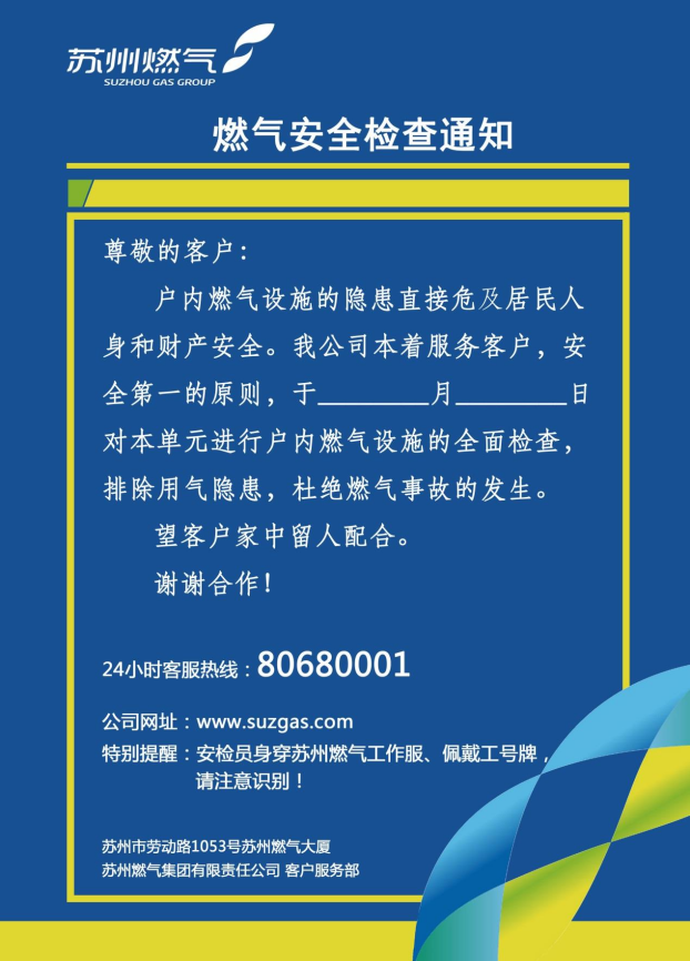 安检员根据安检计划提前一周与社区做好沟通,在小区门口挂上印有mg游戏 LOGO漂亮显眼的宣传海报,等轮到你家安检时还会提前一天在楼道挂上蓝色的安检通知。